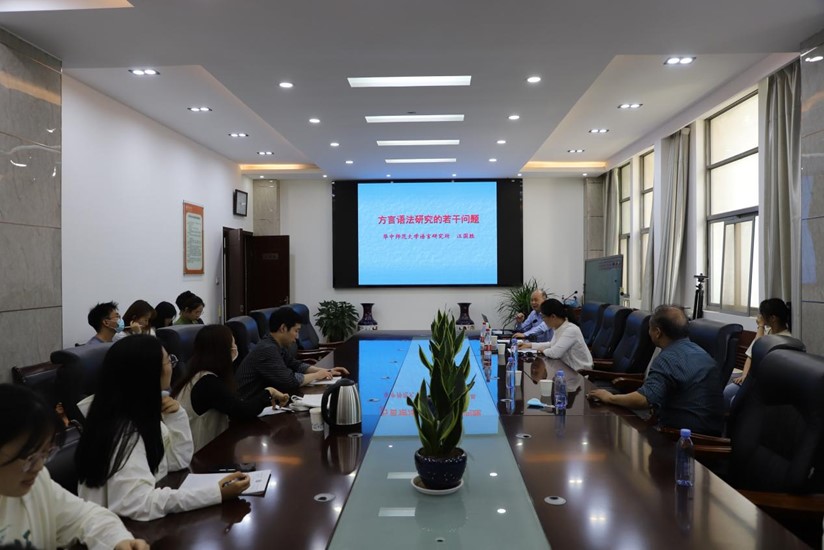 5月22日下午,华中师范大学汪国胜教授应邀做客“卫风讲堂”“百年华诞·学术专场”,在文学院二楼会议室为文学院部分师生作题为“汉语方言语法研究中的若干问题”。讲座由文学院教师张恒君主持。