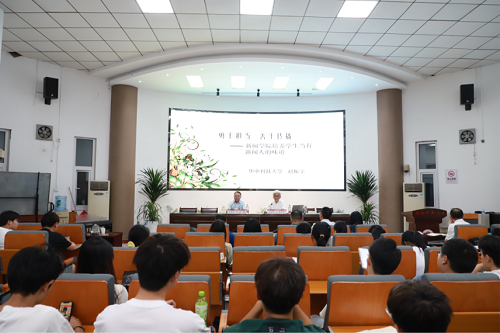6月13日晚,华中科技大学赵振宇教授应邀做客“卫风一线课堂”,在崇文楼一楼报告厅为文学院师生作题为“勇于担当,善于传播——谈新闻学院培养学生当有新闻人的味道”的讲座,学院一百余名师生参与学习。讲座由社会科学处处长段勃主持。