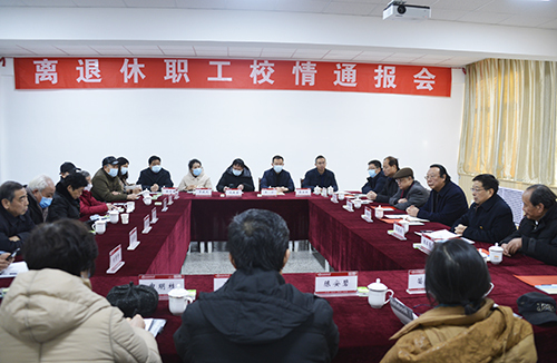 1月8日,我校2020年离退休老同志校情通报会在离退休职工管理处会议室举行。校党委书记赵国祥,校长常俊标,党委常委、副校长马治军出席会议。会议由党委副书记梅宪宾主持。离退休老同志代表、党委办公室、校长办公室、离退休职工管理处主要负责人参加通报会。