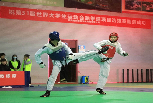 4月13日至15日,由中国大学生体育协会主办、中国大学生体育协会跆拳道分会执行、陕西省学生体育协会承办的第31届世界大学生夏季运动会跆拳道项目选拔赛在西安开赛。本次选拔赛设竞技和品势两个项目,共有来自全国35所高校的200余名选手参赛,我校代表队最终取得2枚金牌、4枚银牌、2枚铜牌和5个第五名的优异成绩。