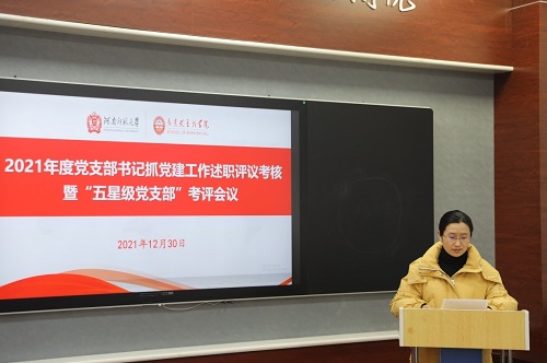 会上,邓晓刚讲解了校党委组织部《关于开展2021年度党支部书记抓党建工作述职评议考核及“五星级党支部”考评工作的通知》要求。学院7名党支部书记聚焦全面加强新时代高校党支部建设,重点围绕提升组织力、强化政治功能,推动党支部教育、管理、监督党员和组织、宣传、凝聚、服务师生,做到“七个有力”等内容,从履行党支部党建责任情况、党支部建设情况、党支部战斗堡垒作用发挥情况、存在问题及改进措施等方面进行了述职汇报。