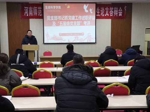 会上,陈勇传达了学校2021年度基层党组织书记抓党建工作述职评议会情况和校党委的工作要求,领学校党委组织部《关于开展2021年度党支部书记抓党建工作述职评议考核及“五星级党支部”考评工作的通知》要求,简要介绍了《河南师范大学“五星级党支部”考评指标体系》内容。按照会议议程,15个党支部书记分别从“履行党建责任情况、党支部建设情况、基层党支部战斗堡垒和党员先锋模范作用发挥情况、存在问题及改进措施”四个方面对2021年度抓党建情况进行述职。述职结束后,参会党员根据各支部平时工作开展及述职情况,对各党支部书记抓党建工作进行了评议考核。