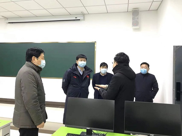为确保新学期工作顺利开展,王宗敏一行实地检查了微机实验室、多媒体教室、智慧教学可视化运行平台、图书馆、味轩餐厅、学生宿舍、多功能报告厅等场地,认真听取平原湖校区党工委和管委会负责人的有关工作汇报,仔细询问迎接开学的各项工作准备情况,现场指导疫情防控应急演练,并对开学前后的校园出入管理、住宿用餐安排、校园全面消杀、健康隔离点设置等重点环节进行了强调和部署。