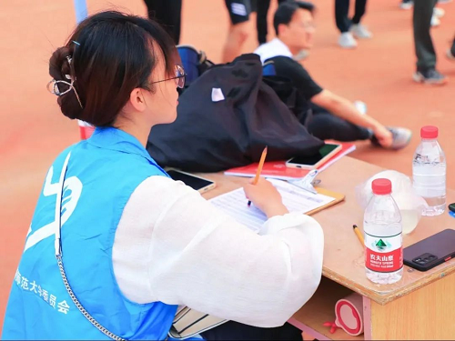“同学,来这边休息一下拿瓶水喝……”,在运动场的各个比赛场地旁,一个个身穿蓝马甲的志愿者正热情地为运动员们提供各类服务。“我们根据任务性质及工作强度合理划分了工作小组,各小组成员在对应主裁判老师的指导下开展培训,明晰具体任务。”参与运动会志愿服务工作的2021级历史文化学院学生李沛儒表示,各岗位志愿服务工作在运动会开始前一周均已准备就绪。