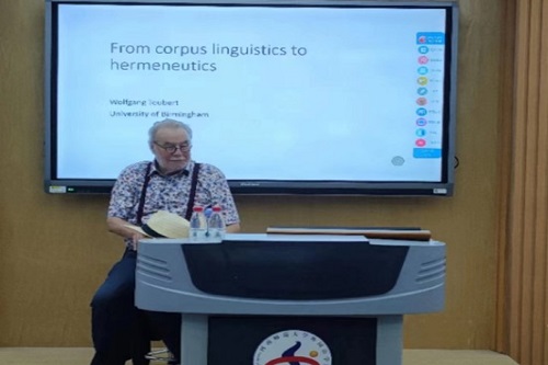 在第二场报告中,Wolfgang Teubert以语料库语言学与阐释学以及二者之间的关系为切入点,指出语料库语言学能为话语分析提供文本,而阐释学有助于理解文本,分析话语。语料库语言学为提取和分析话语提供了方法与工具。阐释学则能为文本分析提供一个新的研究视角。随后,他以老子的《道德经》为例,对文本阐释进行了深入分析。报告结束后, Wolfgang Teubert与现场师生进行了互动交流,师生们表示受益良多。