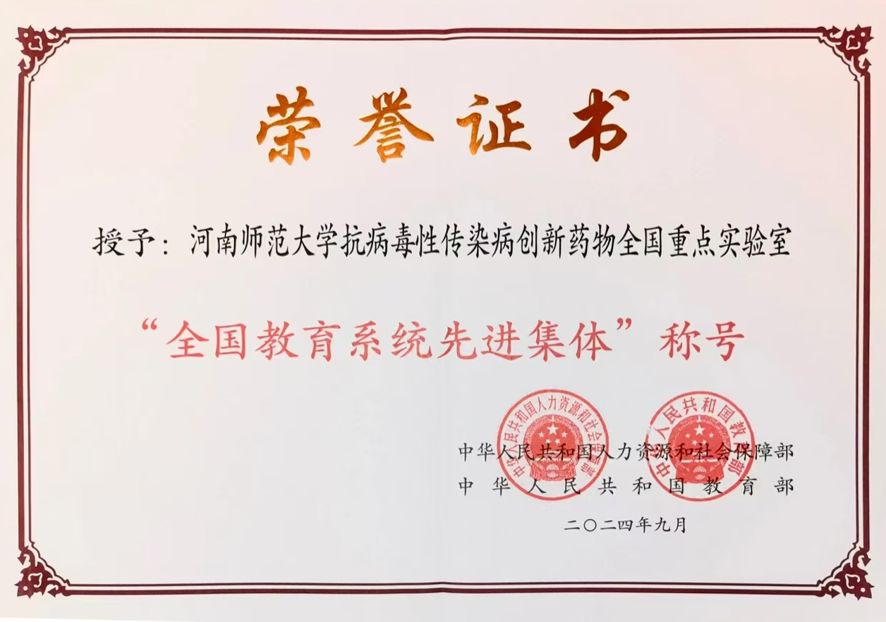 近日,庆祝第四十个教师节暨全国教育系统先进集体和先进个人表彰大会在北京举行。我校抗病毒性传染病创新药物全国重点实验室荣获“全国教育系统先进集体”荣誉称号,实验室主任常俊标院士作为2024年全国教育系统先进集体和先进个人表彰大会受表彰代表在人民大会堂受到习近平等党和国家领导人的亲切接见。
