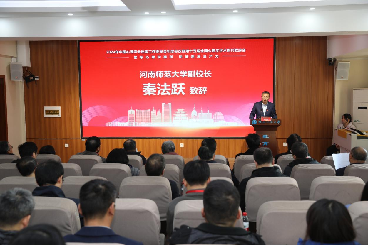 校党委常委、副校长秦法跃出席开幕式并致辞,他向与会专家委员和期刊负责人表示了热烈欢迎并简要介绍了我校的基本情况和心理学科的建设情况,他表示,在新质生产力背景下探讨中国心理学学术期刊的发展大计,一定会为我国心理学期刊的繁荣发展再增助力。