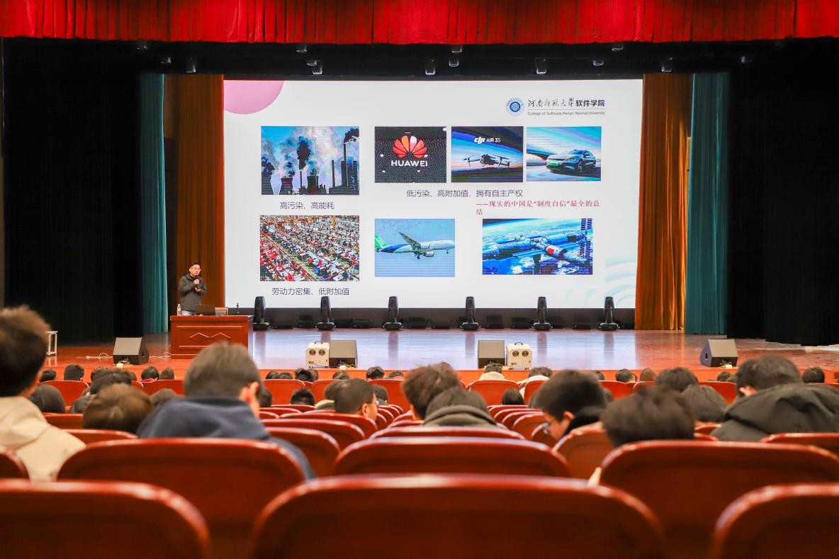 高飞从党的二十届三中全会的重大意义、全面深化改革的总目标、重大原则和重大举措等方面对党的二十届三中全会精神进行了详细解读。围绕全国两会提出的新理念、经济社会发展总体要求和政策取向、重点工作等方面,对2025年全国两会的重点内容进行详细阐述。他表示,希望同学们抓住历史机遇,在时代大潮中实现人生价值;树立远大理想,将个人发展融入国家战略;脚踏实地,夯实专业基础,积极参与社会实践,将理论知识转化为实际成果。