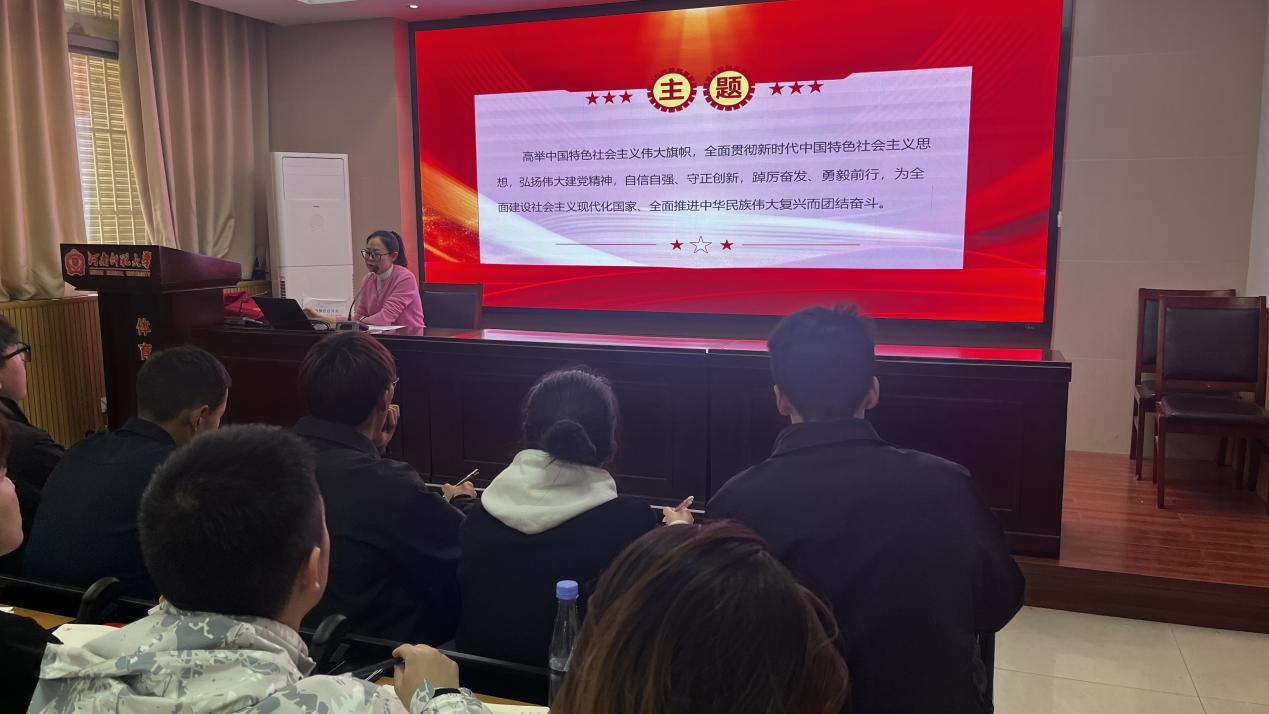 王芳以“新时代的伟大变革”“新时代新征程中国共产党的使命任务”“坚持全面依法治国,推进法治中国建设”等主题词,详细解读了党的二十大报告的深刻内涵,带领大家一起学习了“党领导下的中国十年”经历的三件大事,回答了“中国共产党为什么能,中国特色社会主义为什么好”这两个根本问题。王芳表示,全体政工干部要把学生工作作为战略性工作来抓,用党的科学理论武装青年,用党的初心使命感召青年,努力做大学生的知心人、热心人、引路人。最后,王芳分析了《中国共产党章程》的修改要点,号召同学们要坚定不移听党话、跟党走,立志做有理想、敢担当、能吃苦、肯奋斗的新时代好青年,让青春在全面建设社会主义现代化国家的火热实践中绽放绚丽之花。