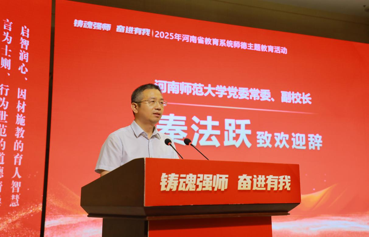 秦法跃致欢迎辞。他表示,学校坚持教师教育特色办学兴校,聚焦师范教育主责主业,以培养具有教育家精神的“大国良师”为己任,在教育强国建设中彰显师范大学的担当作为。学校将以更加严谨的态度,更加精心的准备和贴心的服务,做好赛事的组织和后勤保障工作,为各位参赛选手营造良好的比赛环境,确保比赛圆满成功。