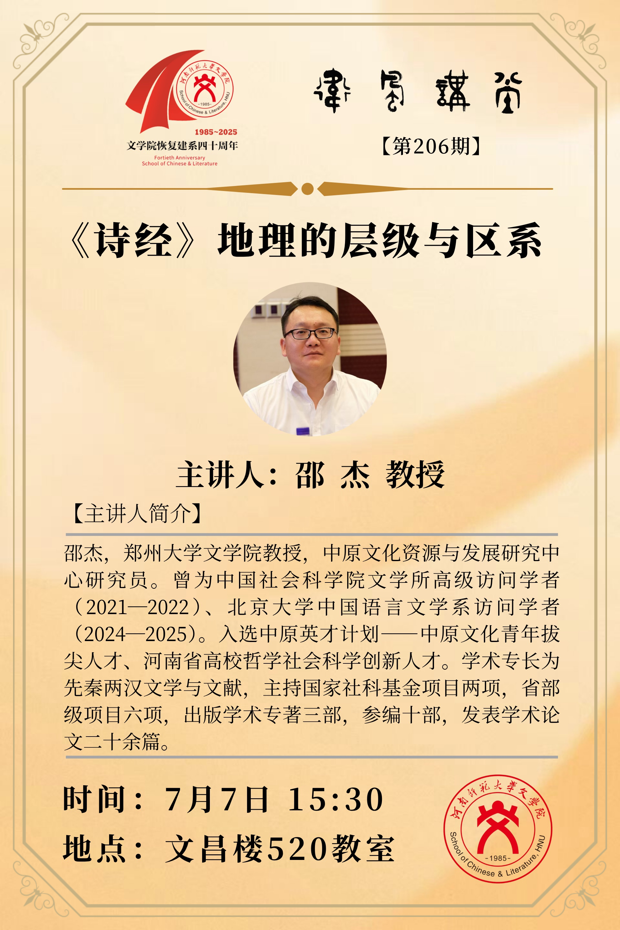 郑州大学邵杰教授将应邀做客“卫风讲堂”