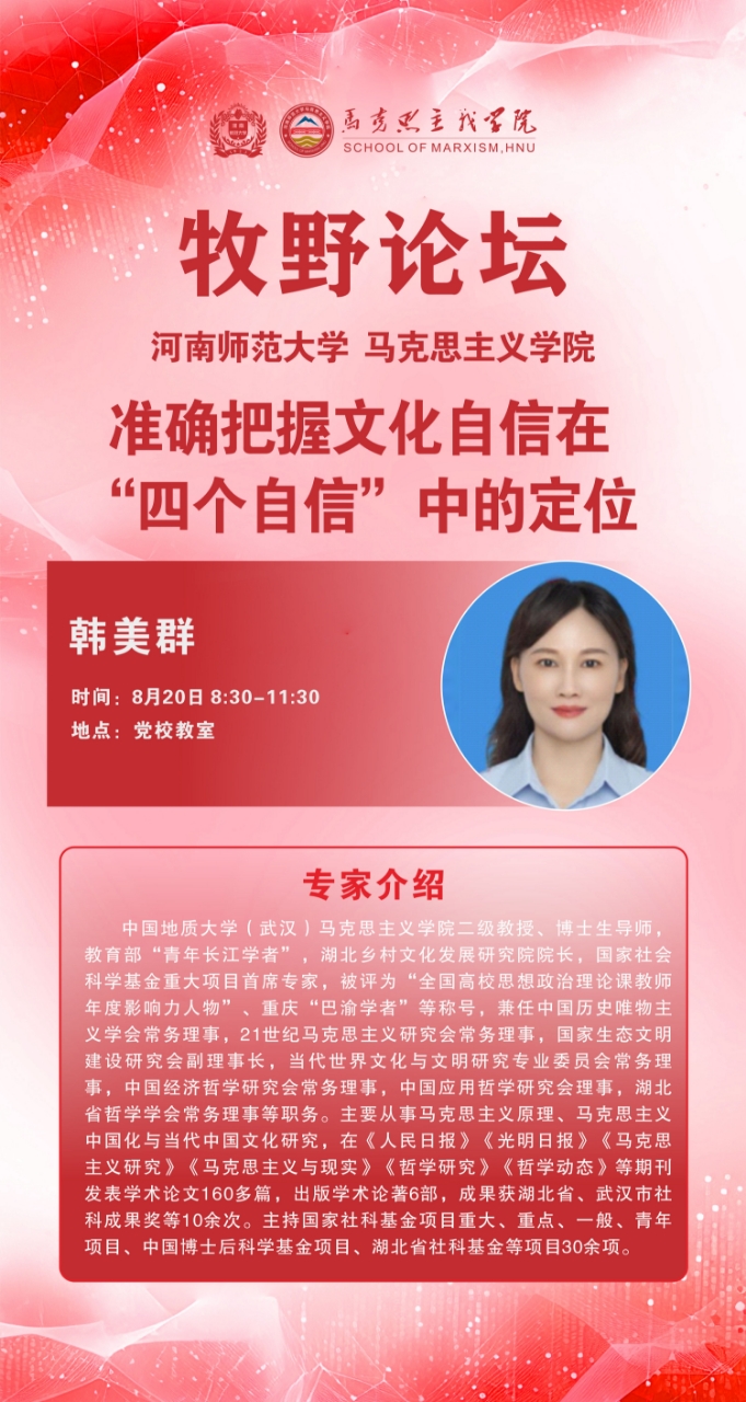 中国地质大学(武汉)韩美群教授将应邀做客“牧野论坛”