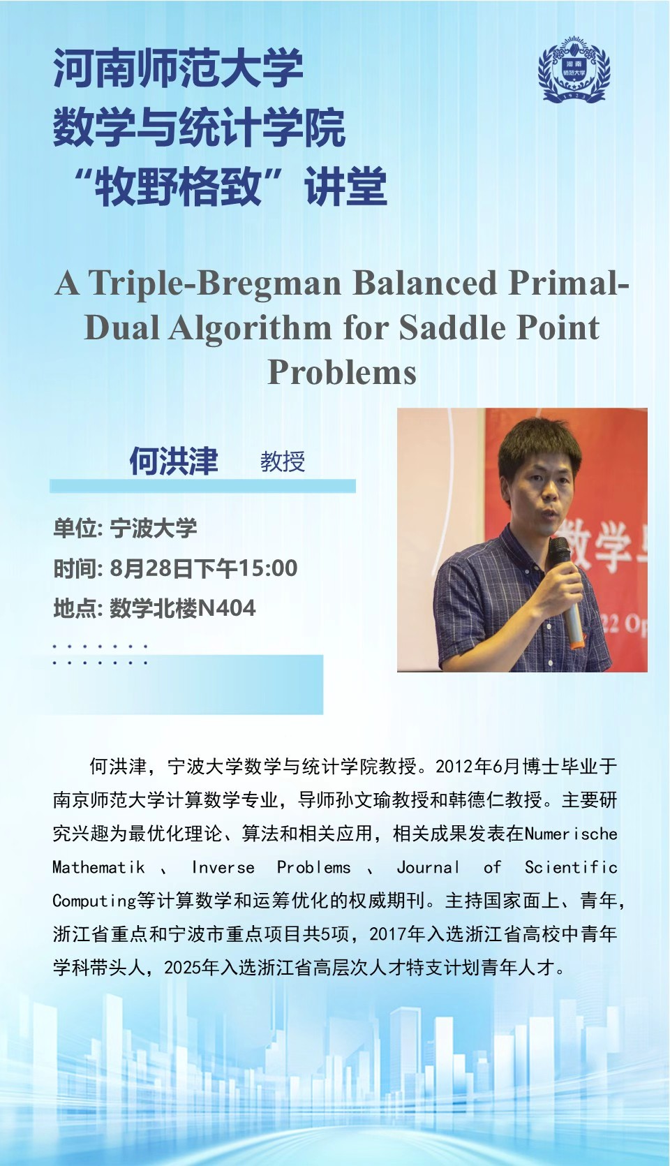 宁波大学何洪津教授将应邀做客“牧野格致”讲堂