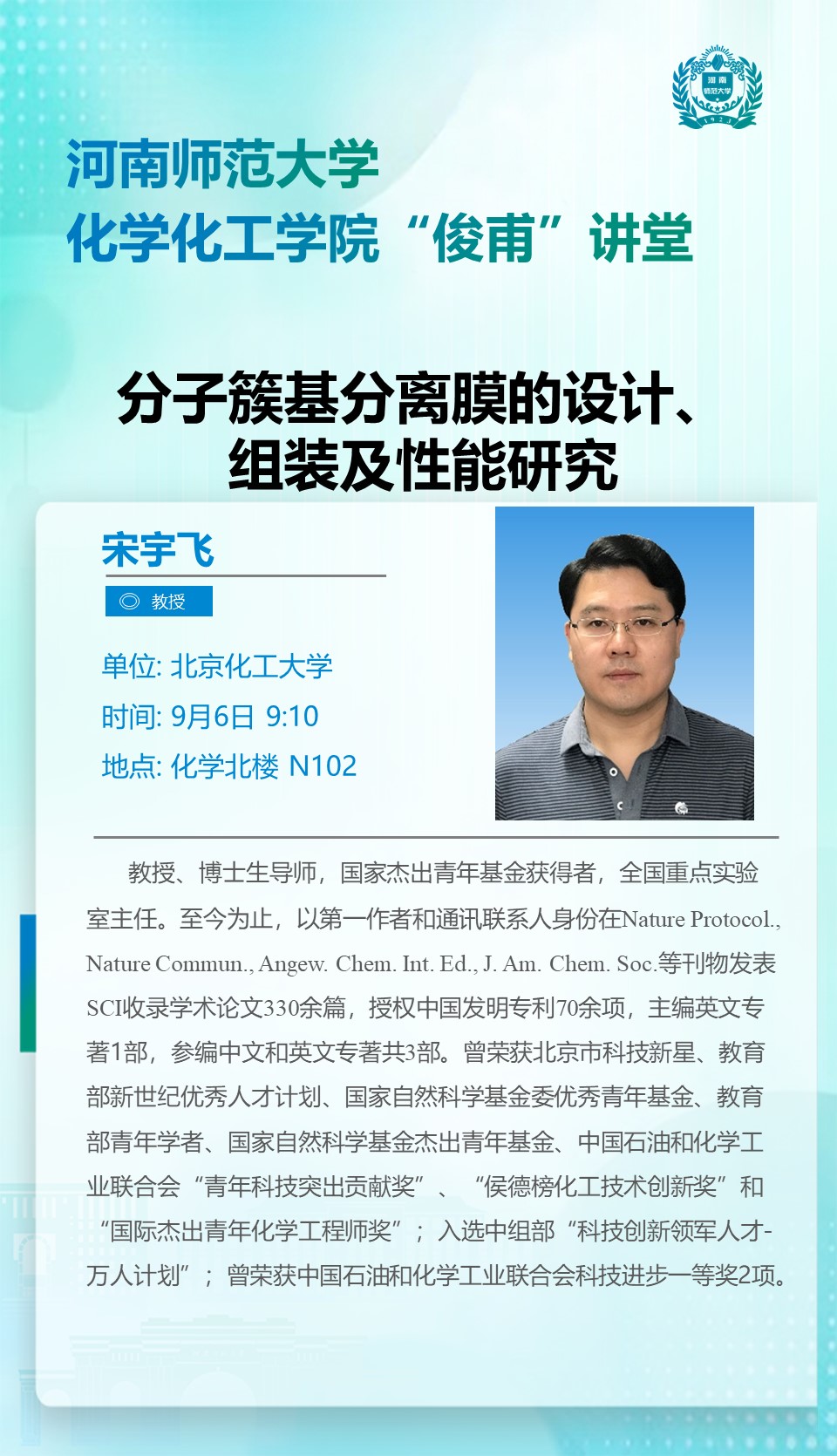 北京化工大学宋宇飞教授将应邀做客“俊甫讲堂”