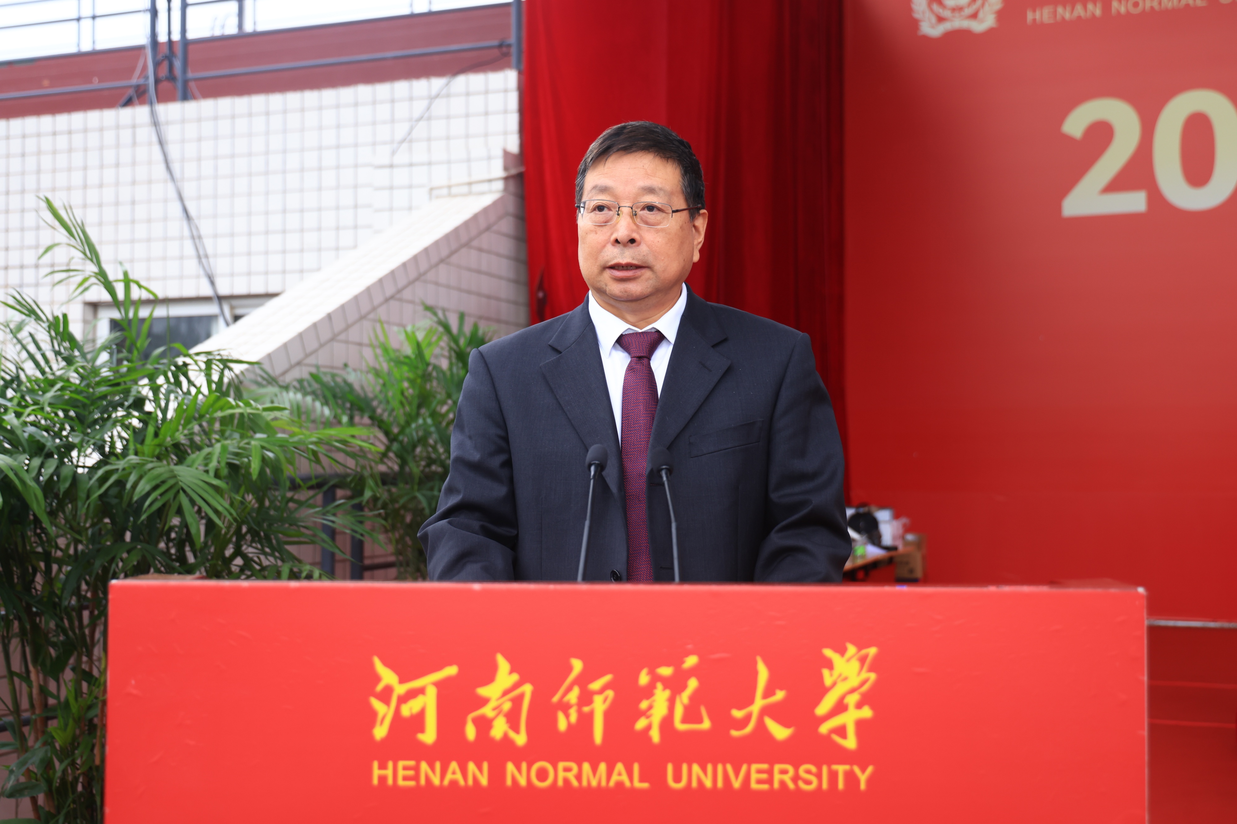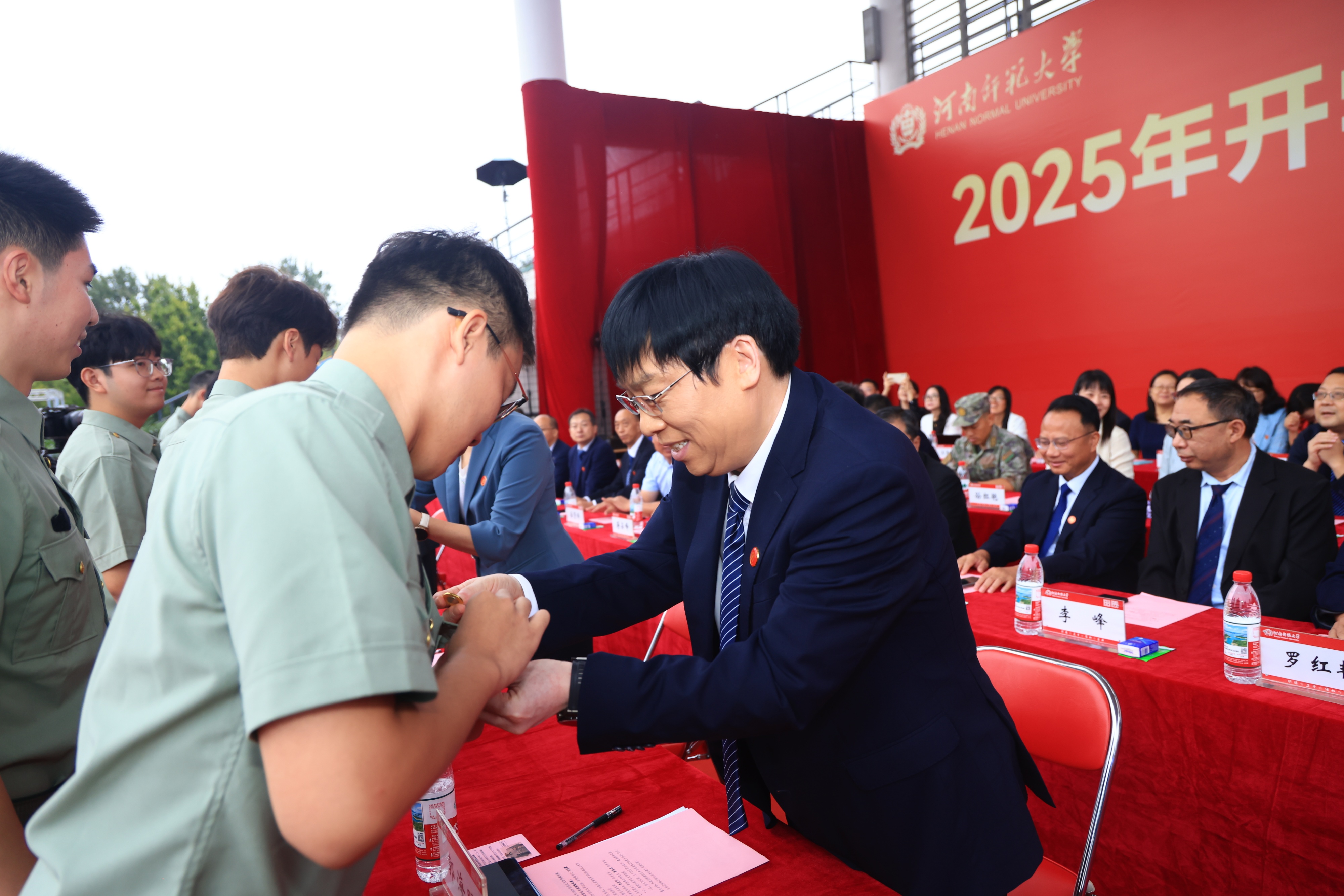 校长郭海明以《接续百年荣光再谱拼搏华章》为题发表讲话。他首先代表学校向新同学表示最热烈的欢迎!向家长和老师们致以最崇高的敬意!向帮训部队的各位教官表示最衷心的感谢!他指出,同学们踏入师大的时刻意义非凡,今年9月,凝聚着全体师大人智慧与汗水、承载着学校未来与希望的科技创新港校区正式投入使用,开启了学校“一校三区”的办学新格局!同学们为百年师大注入了新鲜血液,百年师大也将为你们的青春梦想搭建广阔的舞台。回望百年,师大的荣光熔铸于烽火弦歌、矢志报国的赤诚拼搏中,百年积淀的深厚底蕴与拼搏精神,正激励着新时代师大人向着更高的目标前进!师大的荣光闪耀于追求卓越、勇攀高峰的创新拼搏中,百年师大,始终以国家需求为己任,坚持创新发展理念,不断超越自我,勇立时代潮头。师大的荣光沉淀于立德树人、精育良才的使命拼搏中,百年来,师大人始终坚守立德树人初心,牢记“为党育人、为国育才”使命,矢志培养堪当民族复兴重任的时代新人。