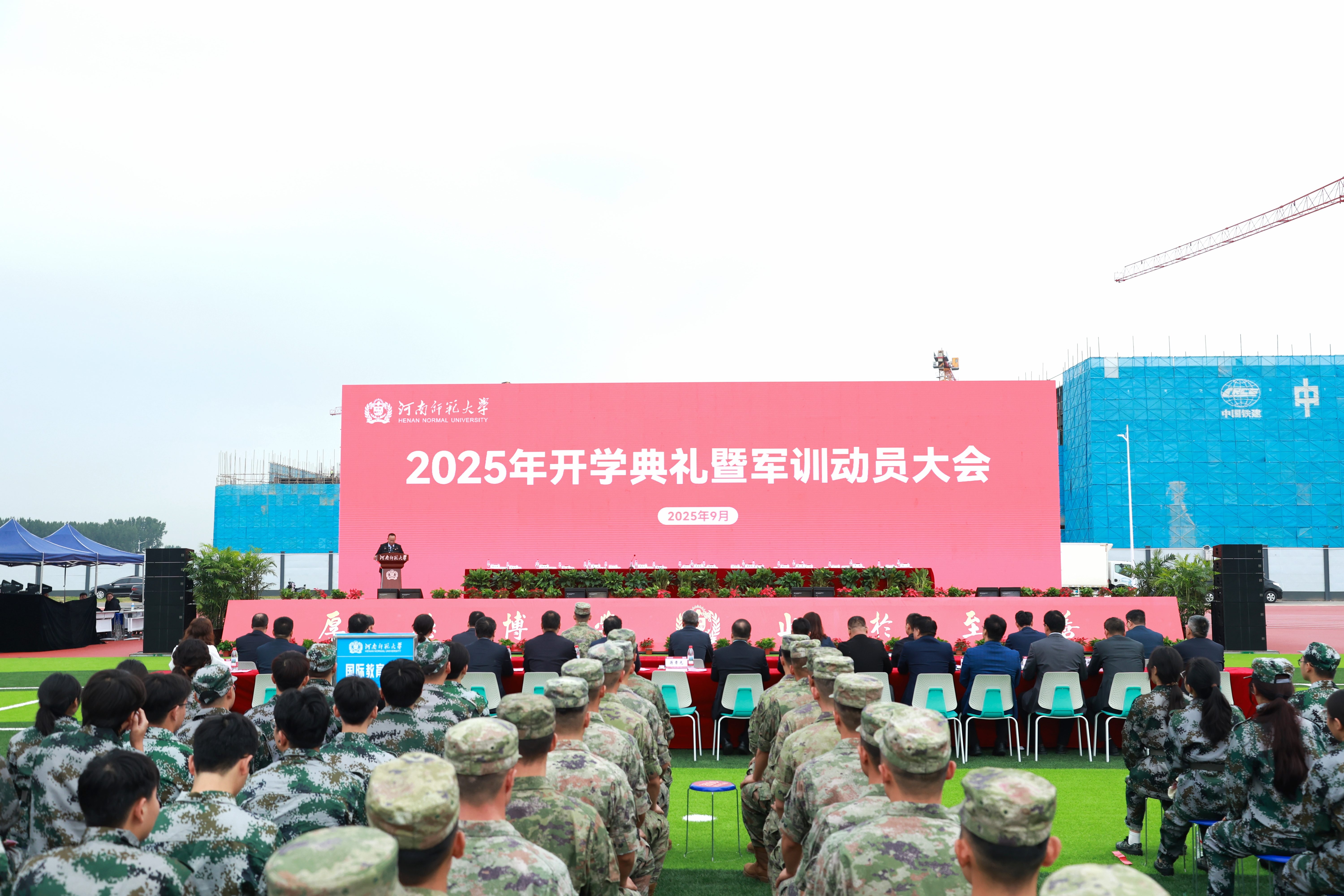 9月8日上午,我校2025年开学典礼暨军训动员大会在建设路校区塑胶运动场庄严举行,校领导冯淑霞、郭海明、王玉良、杨亚东,抗病毒性传染病创新药物全国重点实验室主任、中国科学院院士常俊标出席,校领导秦法跃、杨玉珍在科技创新港,校领导宋晔、苗雨在平原湖校区同步出席。军训帮训部队首长,中国人民解放军32150部队上校副旅长郝鹏元、新乡市牧野区人民武装部上校部长郝冉,中国人民解放军32150部队全体帮训教官、教师代表朱珂、生源中学代表牛建勋、校友代表詹祥江、迎新工作和军训工作专项工作组成员、各院(部)领导、副书记、新生辅导员和2025级全体新生参加。典礼由校党委常委、副校长聂国兴主持。