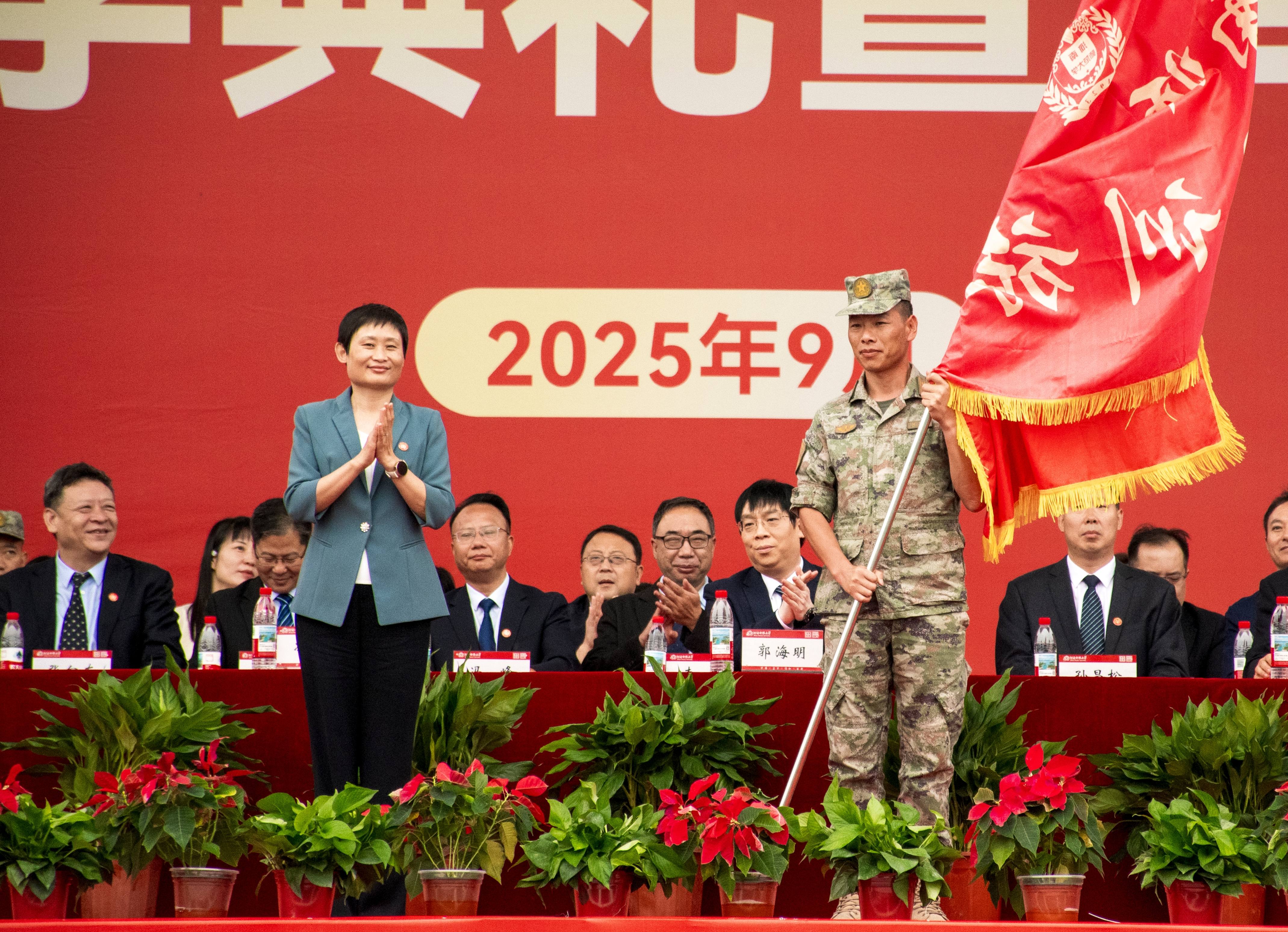 在气势激昂的分列式进行曲中,党委书记冯淑霞为军训旅授旗。帮训部队首长、中国人民解放军32150部队上校副旅长郝鹏元强调,大学生军训是国防后备力量建设的重要途径,是法律法规的明确要求,也是学校推进高质量发展、培养高素质人才的有力举措。全体教官要坚持科学施训、灵活组训、文明带训、正规实训,讲究训练方法,注重循序渐进,展现一流劲旅的良好形象。希望同学们将军训作为锤炼自我、提升素质的宝贵机会,切实做到服从命令、听从指挥、刻苦训练,真正把部队的优良作风和红色基因融入成长历程。