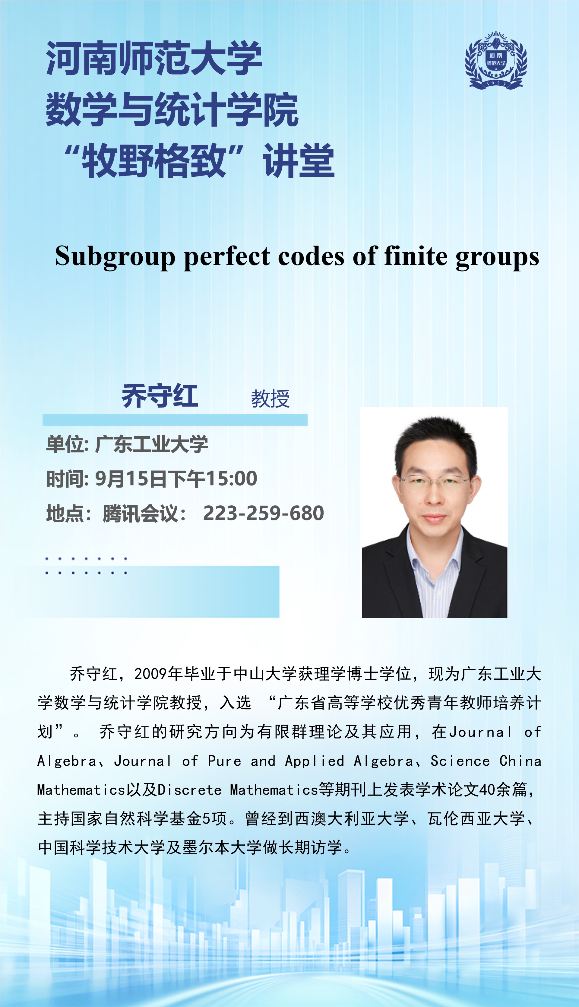 广东工业大学乔守红教授将应邀做客“牧野格致”讲堂