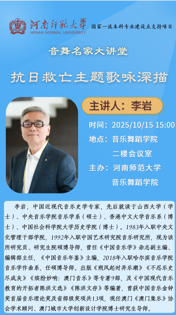中国艺术研究院李岩教授将应邀做客“音舞名家大讲堂”