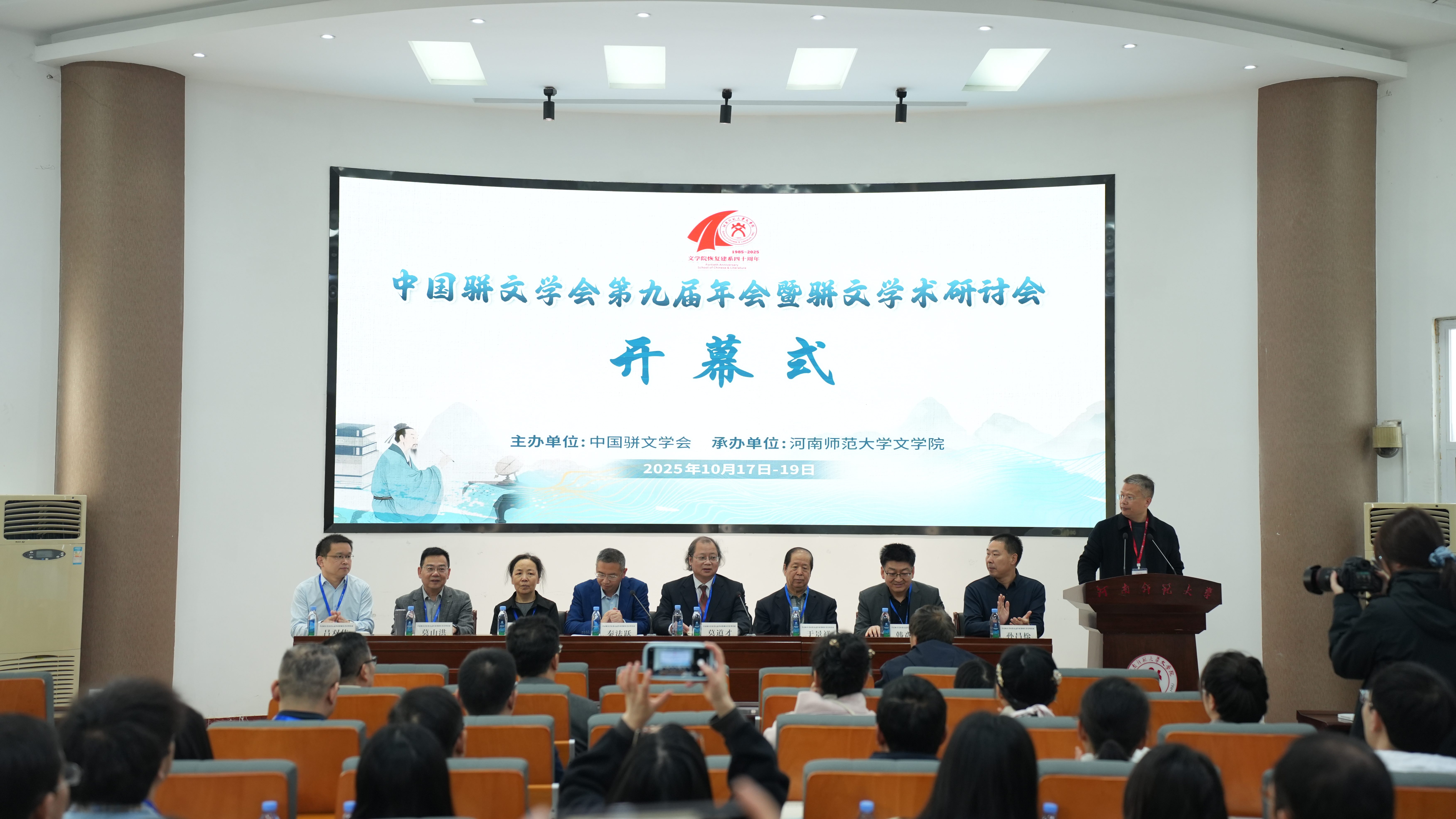 10月17日至19日,由中国骈文学会主办、河南师范大学文学院承办的中国骈文学会第九届年会暨骈文学术研讨会在我校召开。校党委副书记秦法跃出席开幕式并致辞,来自中国大陆、台湾、香港地区的高校、科研机构、出版单位及国家级文化机构的八十余位专家学者围绕骈文相关议题展开深入研讨。开幕式由我校文学院陈鹏教授主持。