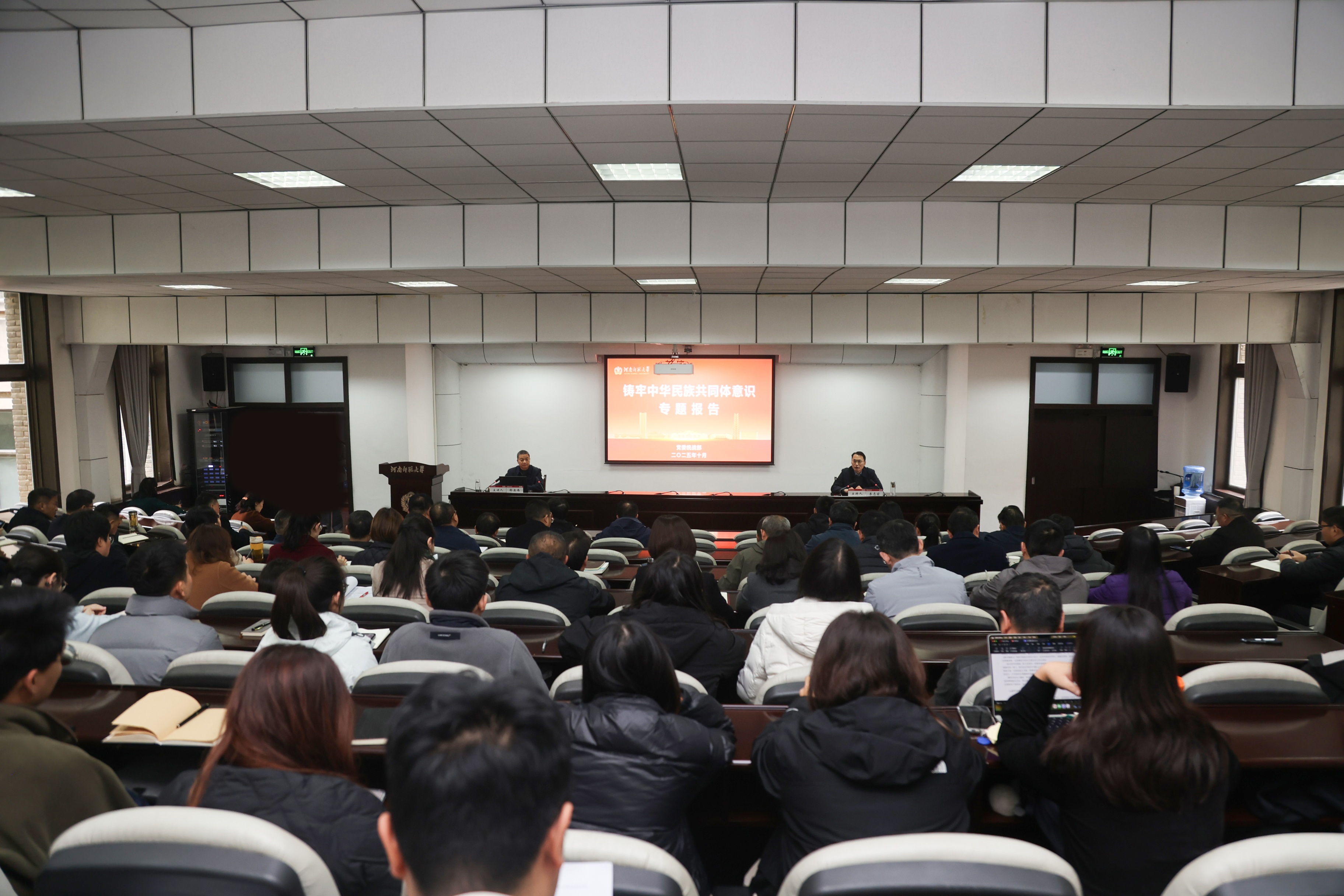 10月21日下午,我校在勤政楼第四会议室举办铸牢中华民族共同体意识专题报告。学校民族宗教领导小组成员单位负责人,各学院(部)书记、副书记、民族宗教工作联络员、辅导员代表、《中华民族共同体概论》授课教师等130余人参加学习。报告由党委常委、统战部部长李志前主持。
