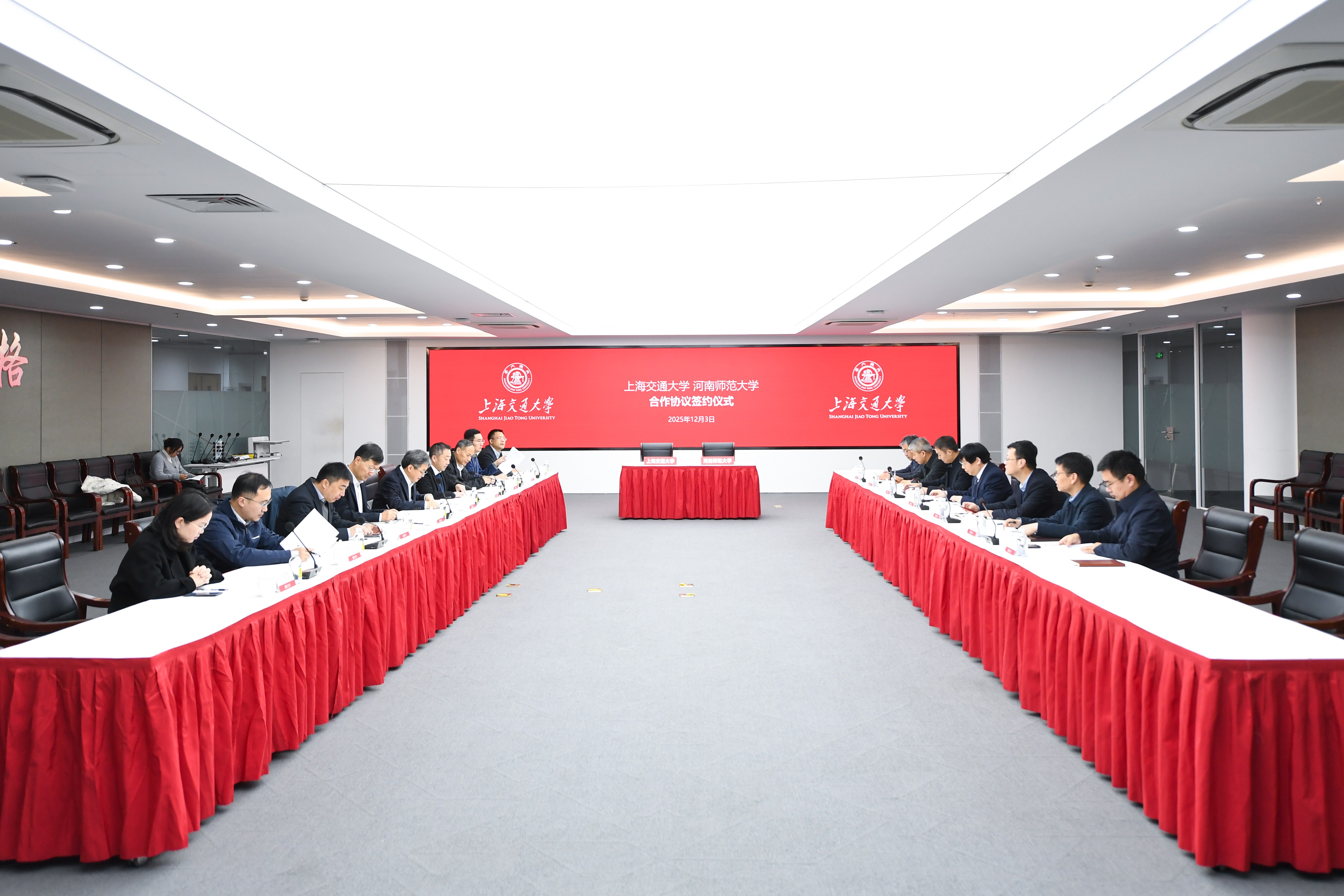 12月3日上午,《上海交通大学 河南师范大学合作协议》签署仪式暨座谈交流会在上海交通大学举行。上海交通大学校长丁奎岭、副校长曾小勤,我校校长郭海明、副校长苗雨出席,上海交通大学及我校相关职能部门负责人参加。签约仪式由曾小勤主持。