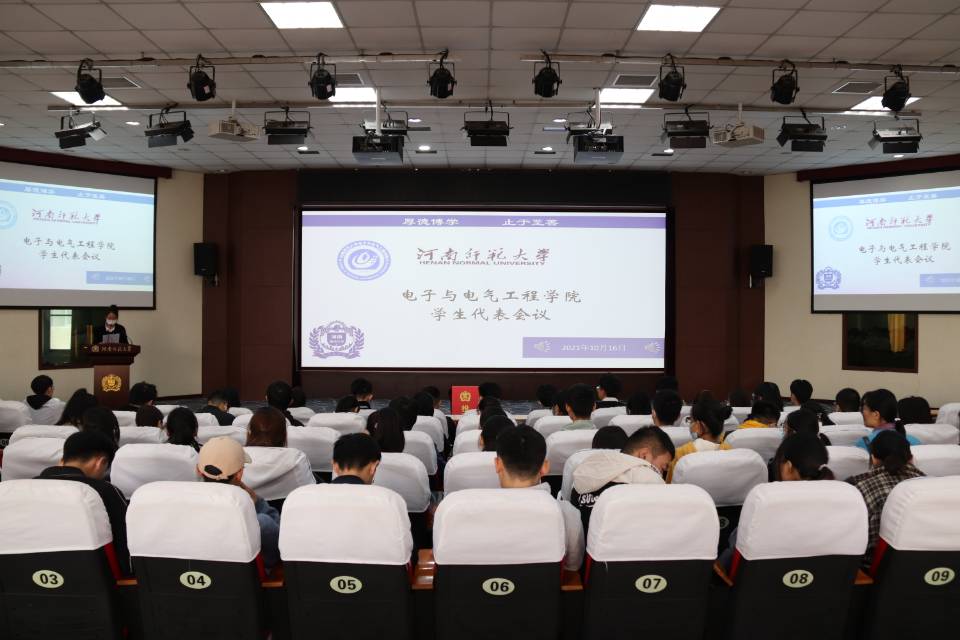 会议伊始,全体起立,奏唱国歌。随后,李雨寒宣读河南师范大学电子与电气工程学院学生代表会议选举办法,介绍了选举相关工作的计划和安排,对无记名投票选举方式进行说明。学生一致通过选举办法。王涵宣读了河南师范大学第二十七次学生代表大会电子与电气工程学院代表候选人预备人选名单。