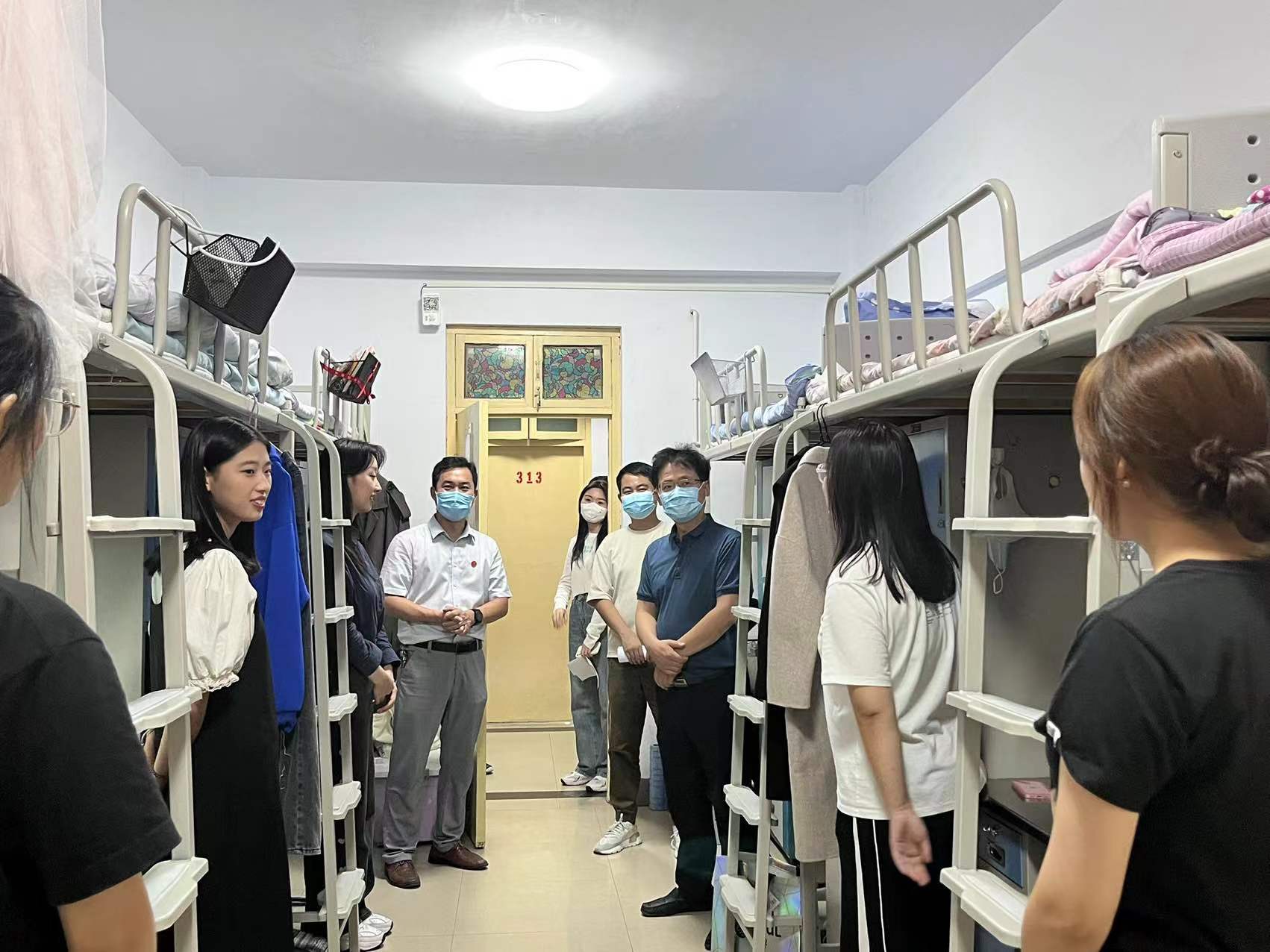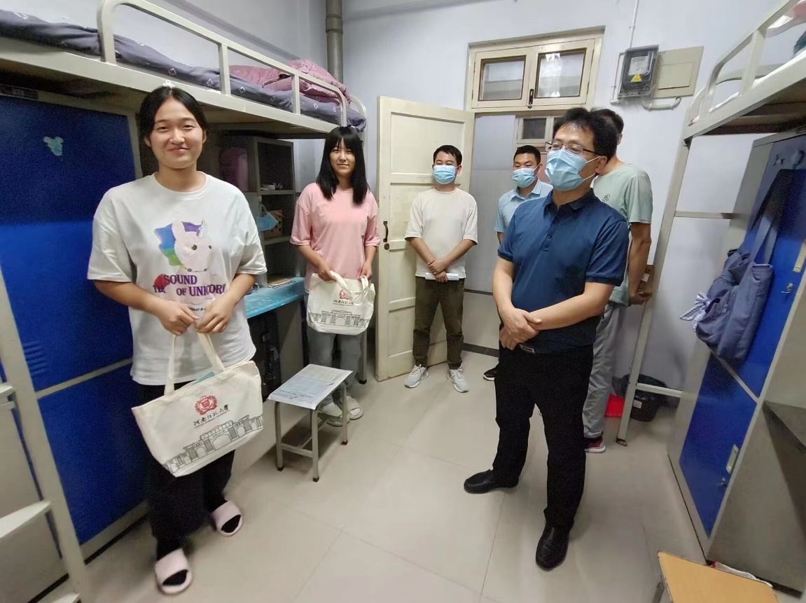 9月12日下午,我院党委书记李浩、院长王长清、院党委副书记邓晓刚等一行携防疫用品等物资到宿舍慰问我院2022级新生。