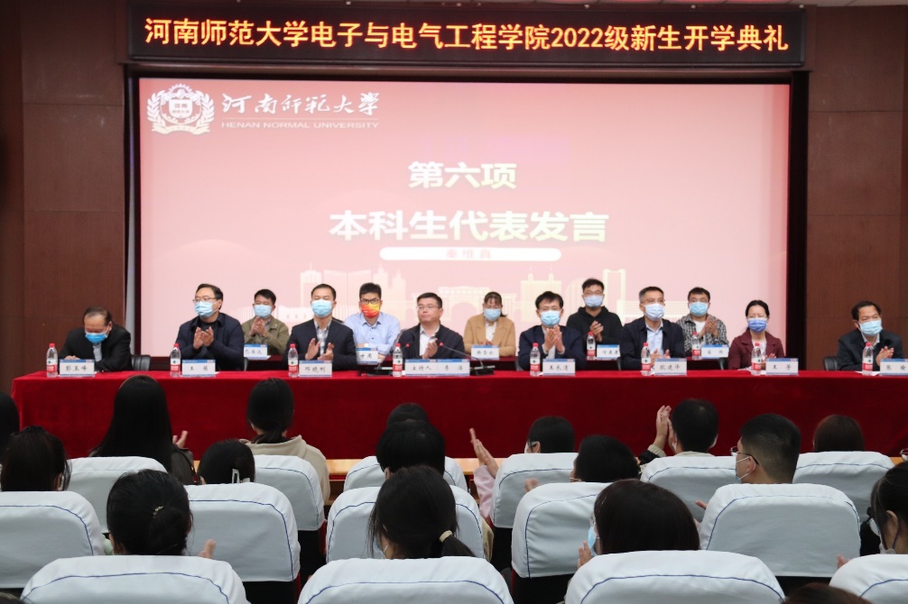 会议伊始,全体起立,奏唱国歌。随后,院长王长清发表了热情、真挚的讲话,对新生的到来表示欢迎,他向学生介绍了学院的悠久历史和学科建设、专业背景,对22级新生提出了三点期望,一是要不忘初心,脚踏实地;二是要主动学习,强化能力;三是要积极向上,善良正直。与此同时,他祝愿我院学子在青春的赛道上奋力奔跑,能跑出属于他们自己的最好成绩。通过视频,校友代表陶焕磊、张软玉对学弟学妹们介绍如何过好大学生活等宝贵经验,同时表达了对学校、学院的祝福。教师代表徐世周期望同学们能够在大学里有明确的目标并为之努力,勉励同学们做到“三个学会”,即“学会学习,学会做事,学会做人”。本科生代表秦维真分享自己的学习经验,以自己的亲身经历期望同学们从一开始就定好目标,坚守初心,砥砺前行,一步一个脚印,脚踏实地走下去。最后,研究生新生代表慕璠钰、本科生新生代表卓童与同学们共勉,表达了新生们奋斗的决心,期望大家都能做一个心中有理想,有担当的新时代青年。