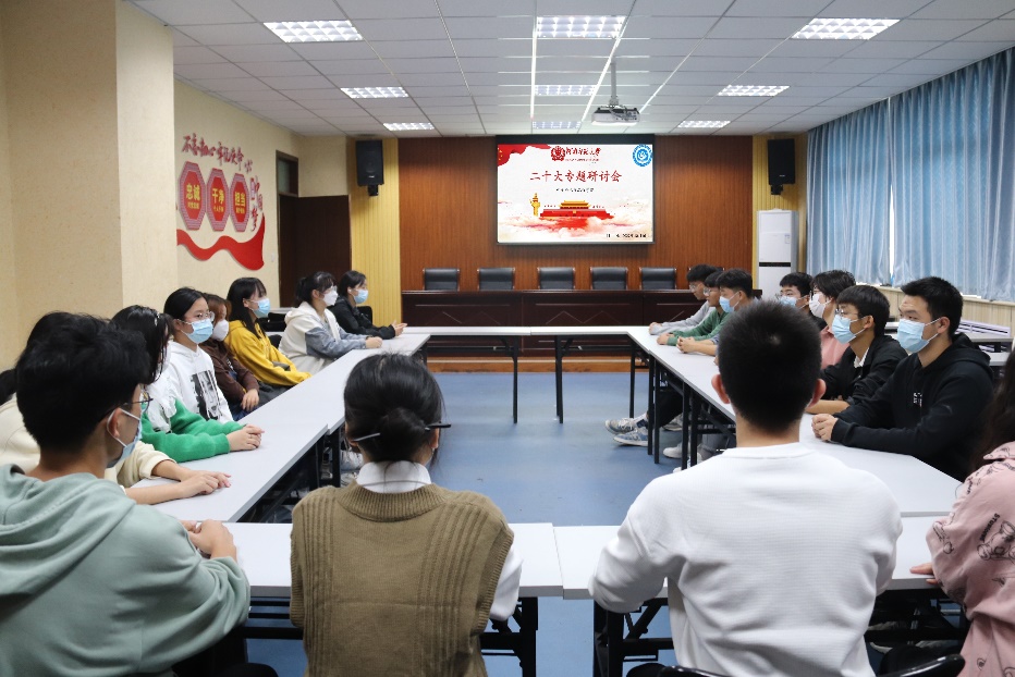 喜迎二十大,永远跟党走,奋进新征程。为学习贯彻党的二十大报告精神,促进我院学子深入了解百年党史,10月16日中午,我院团学社于物理北楼C208召开二十大专题研讨会,团学社全体成员参加了此次会议。会议由文化艺术部部长张甜主持。
