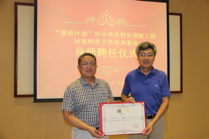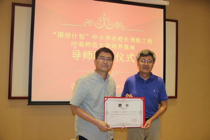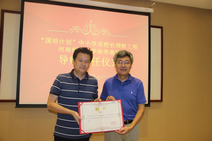 下午,于维涛为领航班作了“三层三段名校长培养体系构建与实施”的报告,一体即整体规划、个性指导、训用结合、连续培养和协同创新;三层即思想引领、实践创新和社会担当;三段即深度学习、导师指导、示范提升。他建议参加培训的学员要认识你自己,坚持规划引领发展的理念,并同各位参训校长进行深入交流,为各位导师颁发聘任证书。