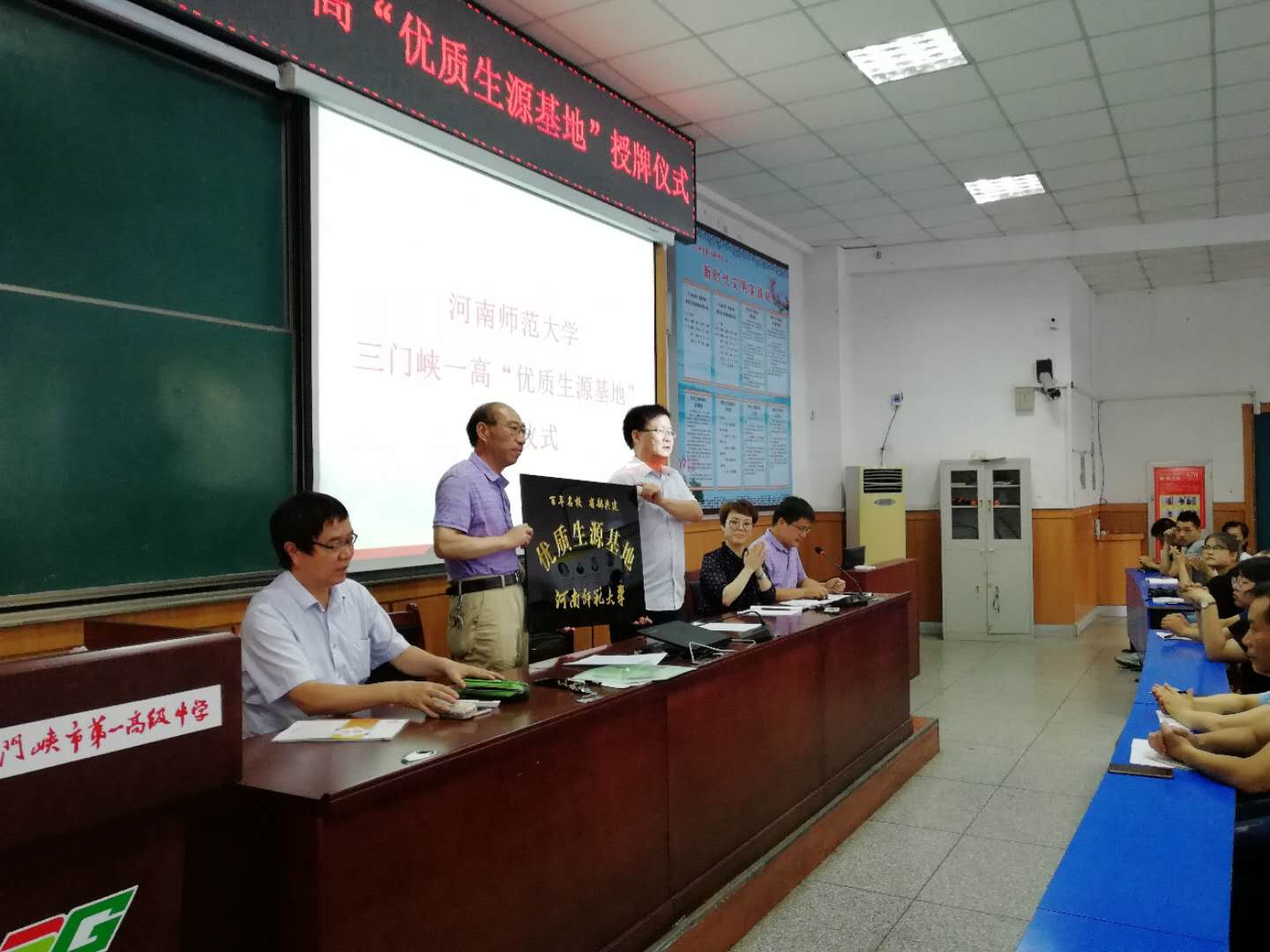 6月27日,学院宣讲小组人员奔赴三门峡一高、三门峡外国语中学、三门峡实验高中开展宣讲活动暨优质生源工程建设合作学校签约授牌仪式。三门峡一高副校长王海峰对宣讲成员的到来表示欢迎,对我校连续三年派出招生宣讲队伍进行招生宣讲活动表示赞赏。计算机与信息工程学院党委书记谢华对三门峡一高长期对我校招生工作的大力支持表示了感谢,代表我校与该校签署了《河南师范大学优质生源基地合作协议书》并在现场举行了“优质生源基地”授牌仪式。