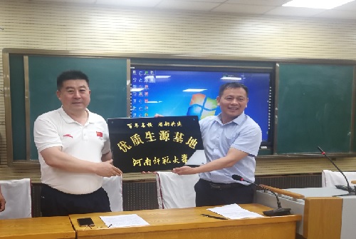 宣讲结束后,梁晓冬代表我校与郑州外国语学校签订了“河南师范大学优质生源基地合作协议书”,并授予郑州市外国语学校“优质生源基地”牌匾。