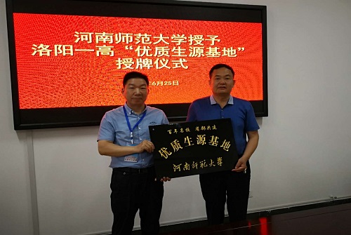 宣讲结束后,学院党委书记刘文安代表我校与洛阳一高签订了“河南师范大学优质生源基地合作协议书”,授予洛阳一高“优质生源基地”牌匾。