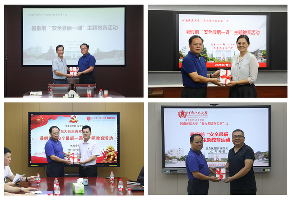 主题教育活动采取统一部署、分头实施的方式进行。党委保卫部部长、保卫处处长宋卫平带相关机关科室负责人,依次到24个学院座谈调研,传达省委、省政府、省教育厅和学校党委有关抓安全保稳定的工作要求,介绍学校安全工作形势,了解各学院安全隐患排查整治进展情况,协调解决各单位安全工作矛盾问题,发放《大学生暑假安全手册》,部署假期前“安全教育最后一课”活动。各学院采取主题班会、集中宣讲、微信推送等多种方式,学习手册内容,宣读安全告知书,签署安全保证书,分头开展暑期安全教育活动,有效提高了大学生安全素养。