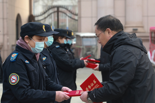 宋卫平首先对获得年度优秀保安队员荣誉称号的人员表示热烈祝贺,对广大保安队员一年以来的辛勤付出致以衷心的感谢。他指出,在刚刚过去的2021年,师大保卫战线干部和广大保安队员始终坚持站在一起、干在一起,风雨无悔地坚守在学校平安建设工作的第一线,牢牢守住了学校疫情防控工作的第一道关口,全力以赴打赢了突如其来的防汛抗洪救灾攻坚战,为圆满完成学校年度平安建设工作任务作出了重要贡献,赢得了组织的肯定和师生的认可。他强调,安全稳定工作是学校开展各项工作的基础和保障,对于师大保卫战线广大干部职工和全体保安队员来说,2022年也必将是极不平凡的一年,疫情防控形势依然严峻,工作任务依然繁重,工作压力依然较大。特别是面对即将召开的北京冬奥会和将于今年下半年召开的党的二十大,同志们一定要把“热爱师大、服务师生”作为做好工作的第一要求,以更高的政治站位和更严的工作标准,严格执行工作规程,认认真真履职尽责,坚定不移推动学校平安建设工作上层次上水平,为确保政治大年里学校整体形势安全稳定作出新的更大贡献。