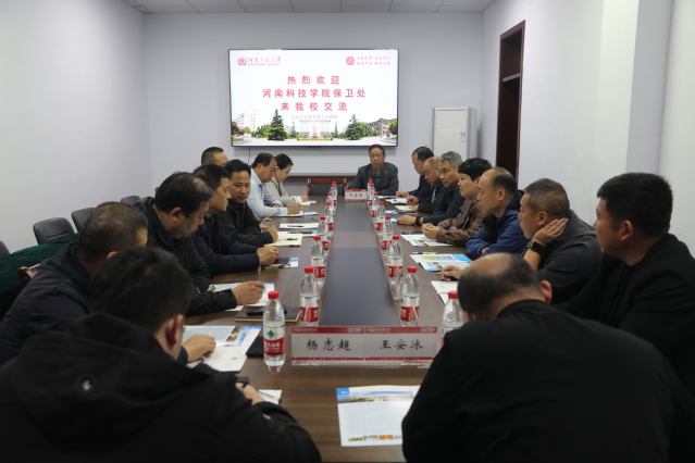 10月24日下午,河南科技学院党委保卫部部长、保卫处处长刘克平一行9人来我校考察交流。副处长陈军涛、副部(处)长潘振斌、副处长高玉臣等与刘克平一行进行了深入的座谈交流。座谈会由保卫处副处长陈军涛主持。