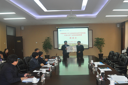 11月27日上午,河南师范大学与河南省林业科学研究院共建皂荚产业国家创新联盟授牌暨座谈会在勤政楼第二会议室召开。党委常委、副校长刘玉芳出席会议并讲话。河南省林业科学研究院院长、皂荚产业国家创新联盟理事长尚忠海,副理事长兼秘书长范定臣,副秘书长祝亚军,新乡市林业站站长何长敏,学校科技处、生命科学学院有关负责人及专家教授参加会议。会议由生命科学学院党委书记丁笑生主持。