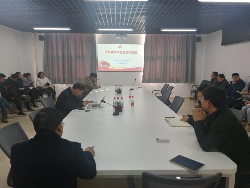 12月14日下午,材料科学与工程学院组织全体教职工在实训楼1115会议室集中收看了学习贯彻党的十九届六中全会精神中央宣讲团莅临河南的宣讲报告会实况录像,深入学习领会党的十九届六中全会精神。
