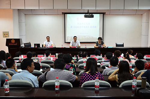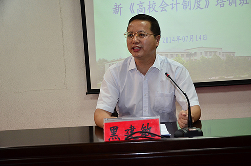 7月14日至15日,武汉理工大学博士生导师、总会计师张友棠教授应邀来我校就新的《高等学校会计制度》实施有关问题作专题培训指导。我校财务处、审计处全体人员及实验室建设与设备管理处、后勤管理处负责国有资产管理工作工作人员参加培训,新乡高校的财务、审计、资产管理人员参加培训。黑建敏副校长出席开班仪式并讲话。