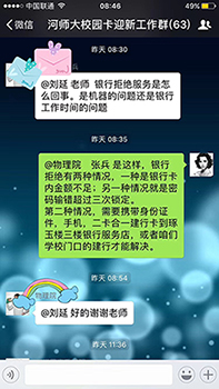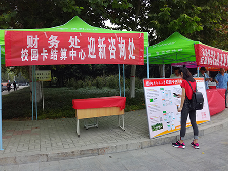 校园卡结算中心设计了“校园卡使用说明书”,随录取通知书发放给新生,让新同学没有入校就能了解校内的基本生活消费方式;召开各院系迎新同学“校园卡常识”专题培训会,发放相关资料,参与接待的同学及时指导新同学正确使用校园卡;迎新期间迎新现场放置宣传展板,设立咨询处方便新生及家长了解校园卡功能及使用方法;建立“迎新校园卡工作群”,实时沟通报到现场各类问题,及时解决迎新过程中出现的问题;军训期间结合学院举办的“新生一日游”活动,和新同学们零距离,讲解知识、回答疑问。