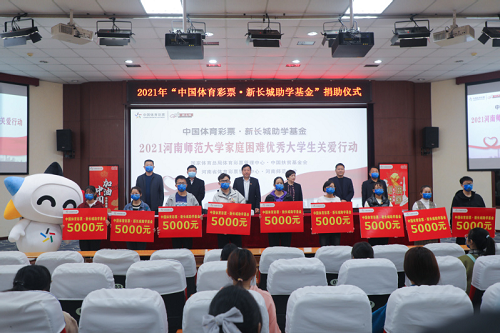 本次捐助是河南省体育彩票管理中心对我校家庭经济困难学生的第五次捐助,共有120名2021级学生得到“中国体育彩票·新长城助学基金”,每名学生5000元。