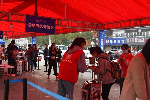 校长常俊标一行先后来到高铁站迎新点和东区迎新现场,检查健康码查验、体温测量、核酸检测等疫情防控重点工作,叮嘱工作人员切实增强疫情防控意识,严格落实学校疫情防控和安全工作有关规定。在各学院迎新摊位前,常俊标仔细询问了新生的报到情况,与学生家长亲切交流,征求意见建议,叮嘱相关部门要高度重视学生学习生活条件改善工作,努力为学生营造一个温馨、舒适的学习生活环境。