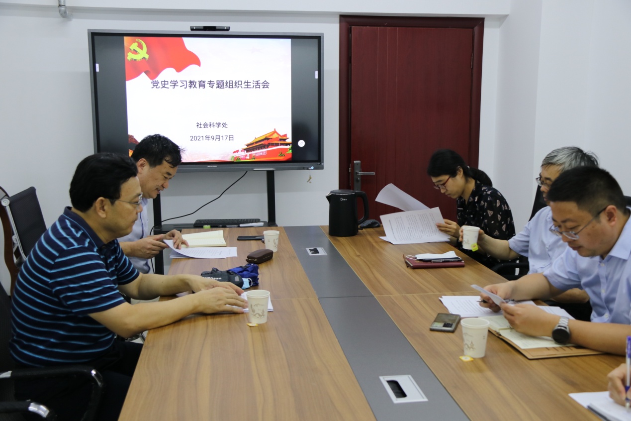 9月17日下午,社科处党支部在致远楼509室召开党史学习教育专题组织生活会。校党委常委、副校长李雪山以普通党员身份参加会议,社科处党支部书记李永贤主持会议。
