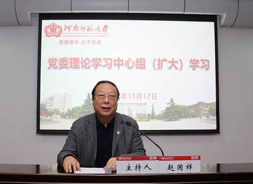 11月17日,我校在勤政楼第四会议室举行党委理论学习中心组(扩大)学习。教育部高等学校社会科学发展研究中心主任王炳林受邀通过腾讯会议平台作党的十九届六中全会精神线上专题报告。报告会由校党委书记赵国祥主持,校党委理论学习中心组成员、处级以上干部听取了报告。