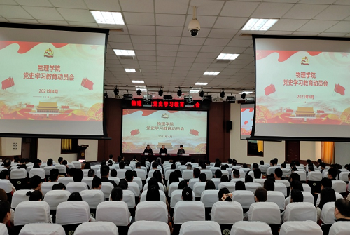 4月13日下午,物理学院在物理北楼三楼报告厅召开党史学习教育动员会。学院全体教职员工及学生党员参加本次动员会。会议由学院党委副书记赵旭主持。