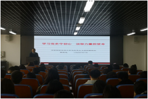 为全面落实党史学习教育的部署要求,不断增强学习党史的针对性和实效性,4月13日下午,环境学院召开党史学习教育专题报告会,邀请河南财经政法大学马克思主义学院副院长田训龙作专题报告。学院全体师生党员、入党积极分子代表参加本次报告会。会议由学院党委书记苏现伐主持。