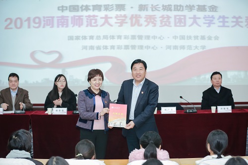 本次资助是河南省体育彩票管理中心对我校家庭经济困难学生的第三次资助,共资助学生120名,每名受助5000元。