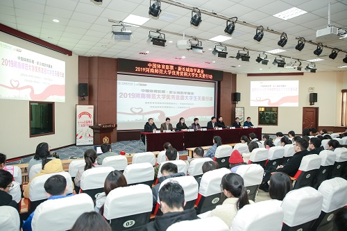 12月11日上午,“中国体育彩票•新长城助学基金”关爱优秀困难大学生资助仪式在我校举行。党委副书记陈广文出席仪式并讲话。河南省体育彩票管理中心主任王海新,中国扶贫基金会新长城项目部傅蓓蓓,新乡市体育局局长许毅明,二十家新闻媒体、社会人士代表及各学院党委(党总支)副书记、辅导员和受助学生参加仪式。仪式由学生资助服务中心主任赵红杰主持。