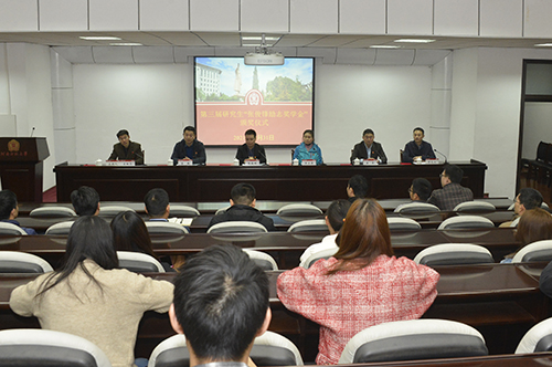 3月31日上午,我校在勤政楼第四会议室举行第三届研究生“张俊锋励志奖学金”颁奖仪式。我校校友“张俊锋励志奖学金”的设立者张俊锋先生出席仪式,党委研究生工作部、研究生院,校友与基金工作办公室负责人,获奖研究生及其导师,相关培养单位的主管领导及部分研究生代表参加了仪式,张俊锋先生的导师毕卫萍教授也应邀参加。仪式由研究生院院长左红亮主持。